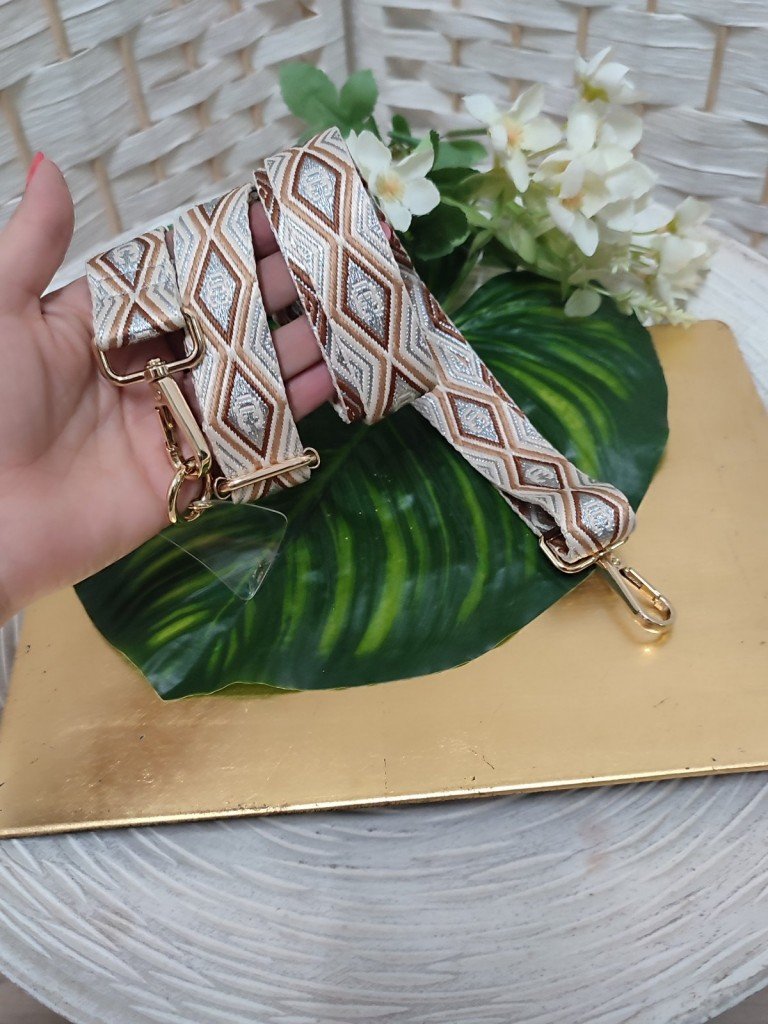 Asa regulable de textil con hebilla en dorada. Quítale el asa clásica a tu bolso y dale un toque más moderno a tu bolso poniéndole el asa más de moda de la nueva temporada.