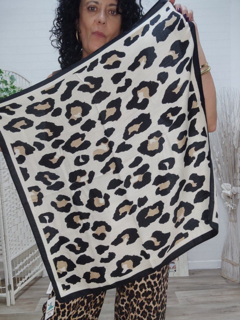 Pañuelo en tejido textil con fondo en beige y negro.