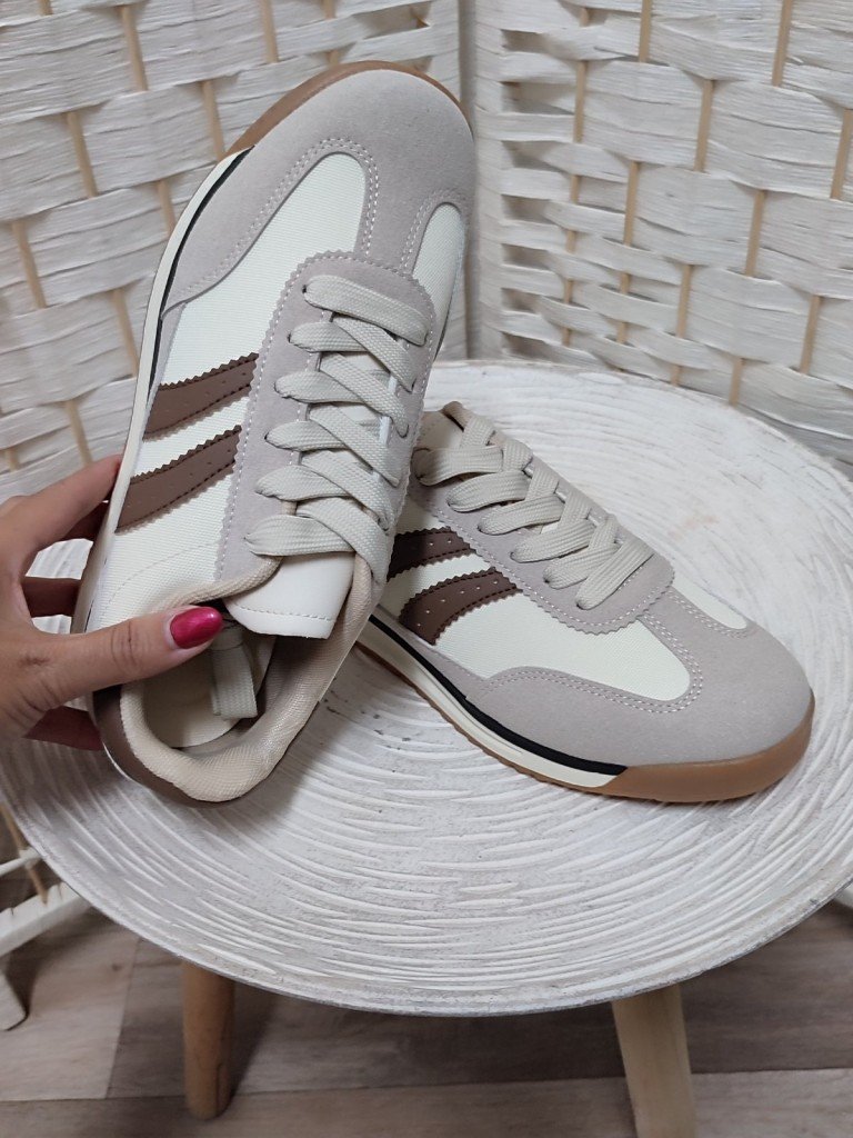 Deportivas en colores beige/camel con cierre de cordones. Súper tendencia en colores. Desde el número 36 hasta el número 40.