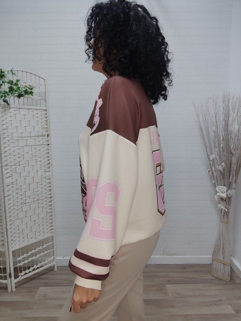 Sudadera tipo oversize, su cuello es en forma de V. Su manga es caída. Es un fantástico tejido que no pica y no necesita plancha.