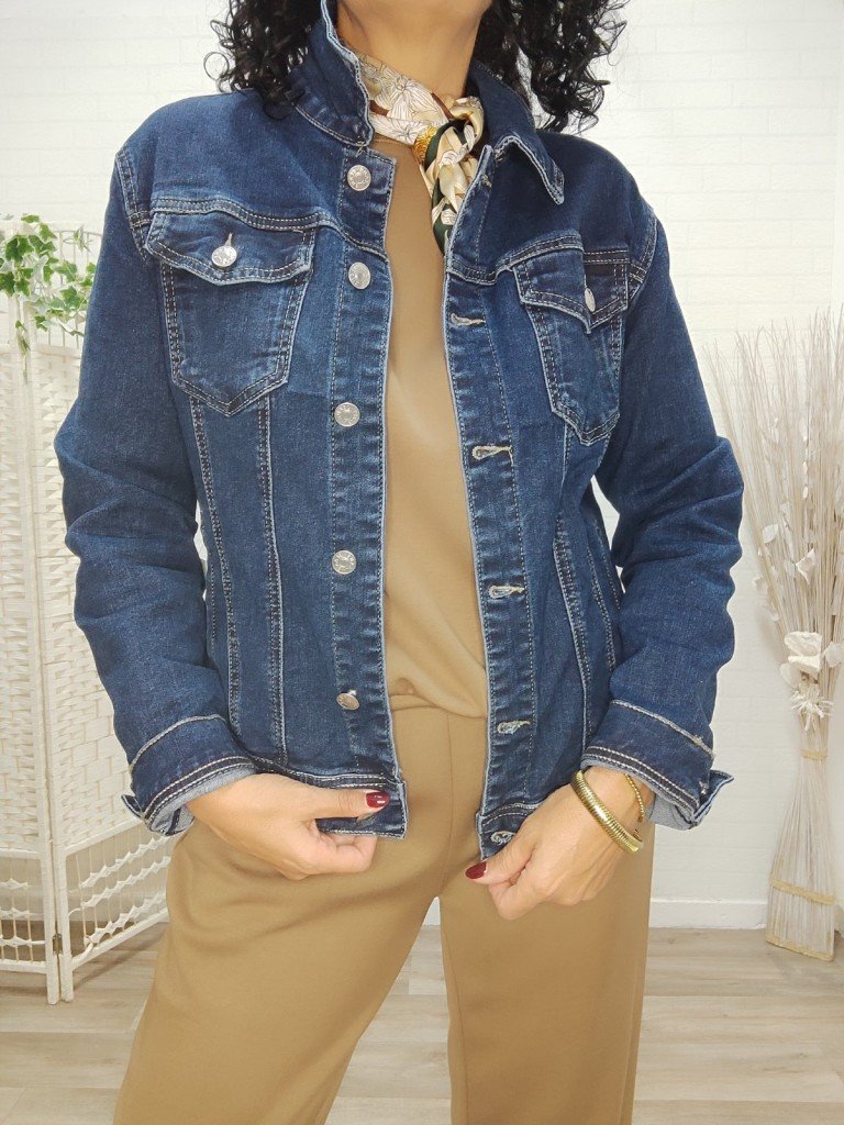 Chaqueta vaquera en azul . Cierre de botones , bolsillos laterales y frontales. Súper cómoda porque lleva elástan. Talla 38/40/42/44/46/48/50.