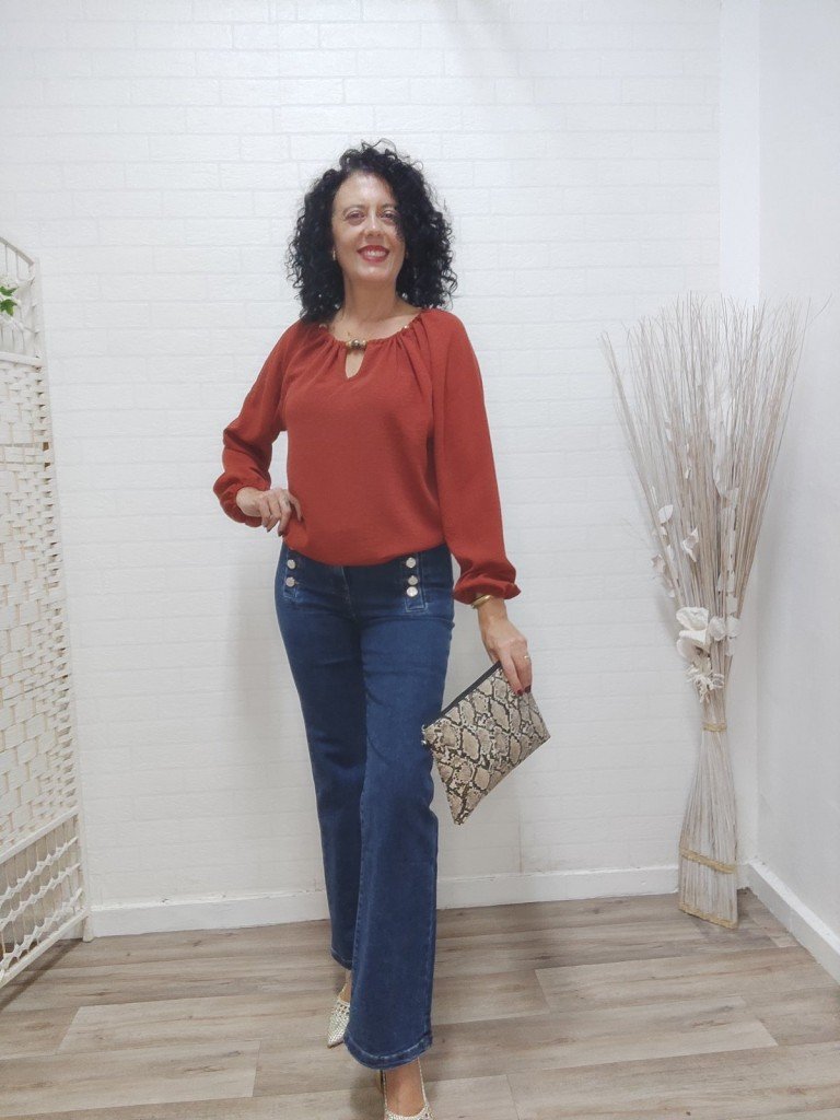 Pantalón vaquero con un corte recto que sienta espectacular. Bolsillos delanteros , cierre de cremallera y botón. Botones decorativos en la parte delantera. Talla 34/36/38/40/42.