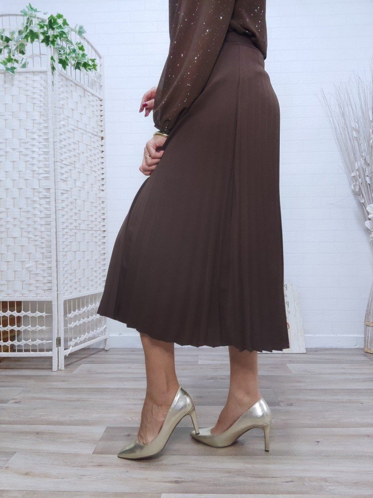 Preciosa falda de tablas con cintura elástica, ideal para combinar tanto deportivo como más elegante.
