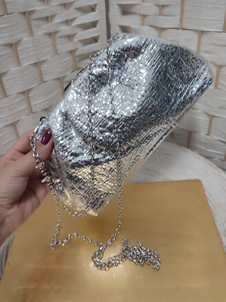 Bolso con diseño super tendencia. Lleva dos asas en estilo cadena, una más corta que puedes utilizar de mano y otra más larga para poder llevar colgado.