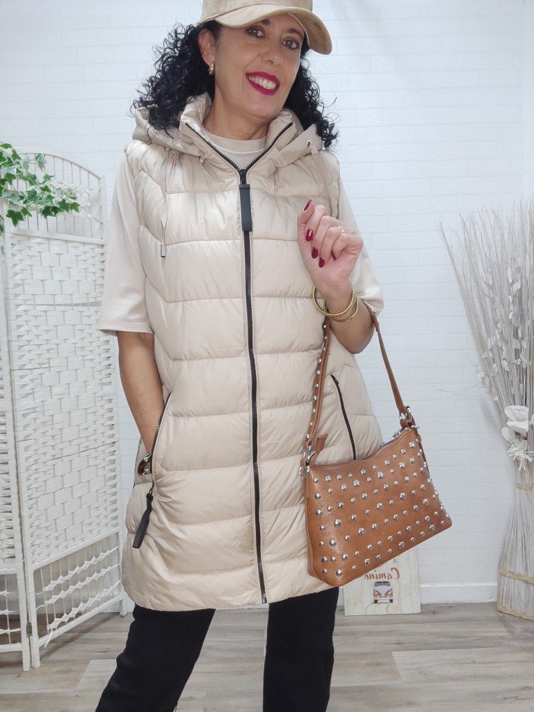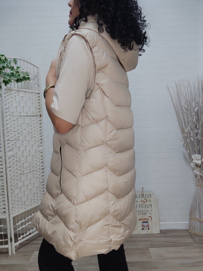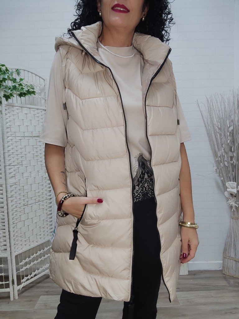 Chaleco acolchado con cierre cremallera. Lleva bolsillos laterales y el gorro de puede quitar. Talla M/L/XL/XXL/XXXL.