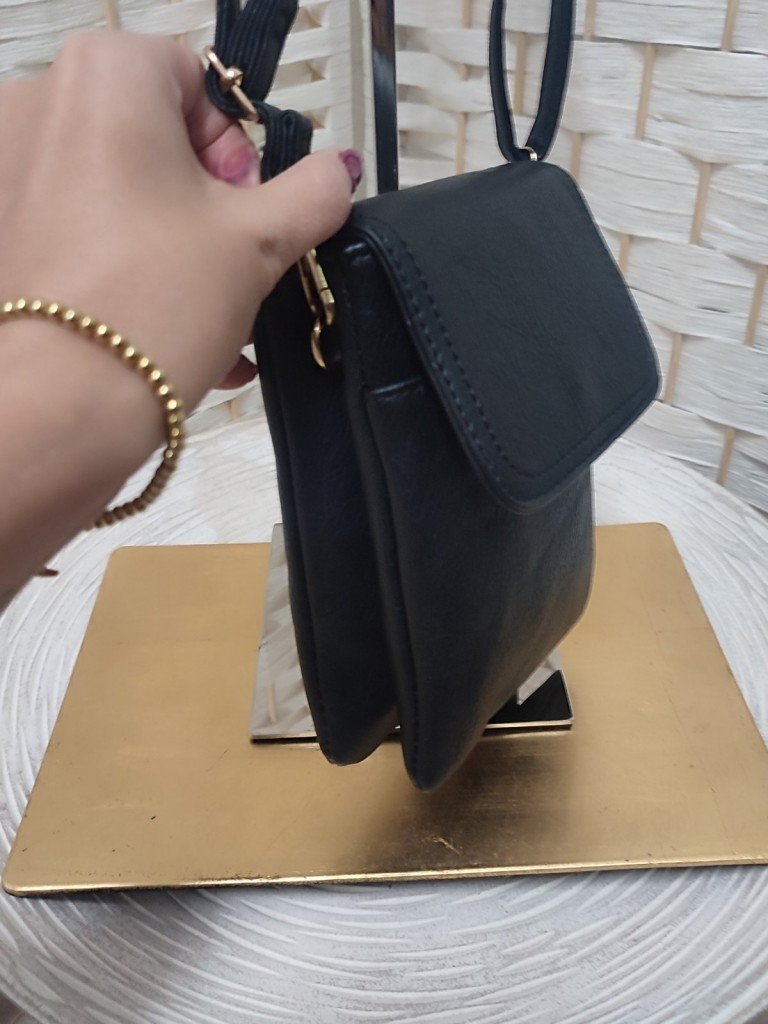 Bolso perfecto para el día a día con asa fija regulable, Cierre con solapa y botón de click. Interior con dos compartimentos con cierre de cremallera.