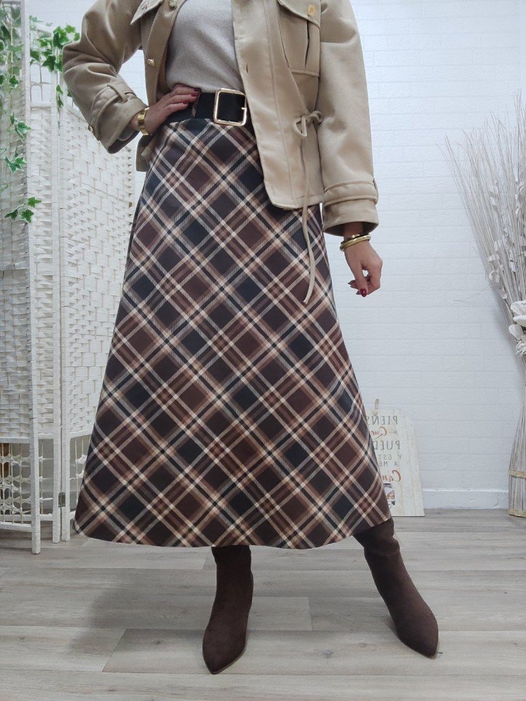 Falda con corte A, cintura elástica ( incluye cinturón).