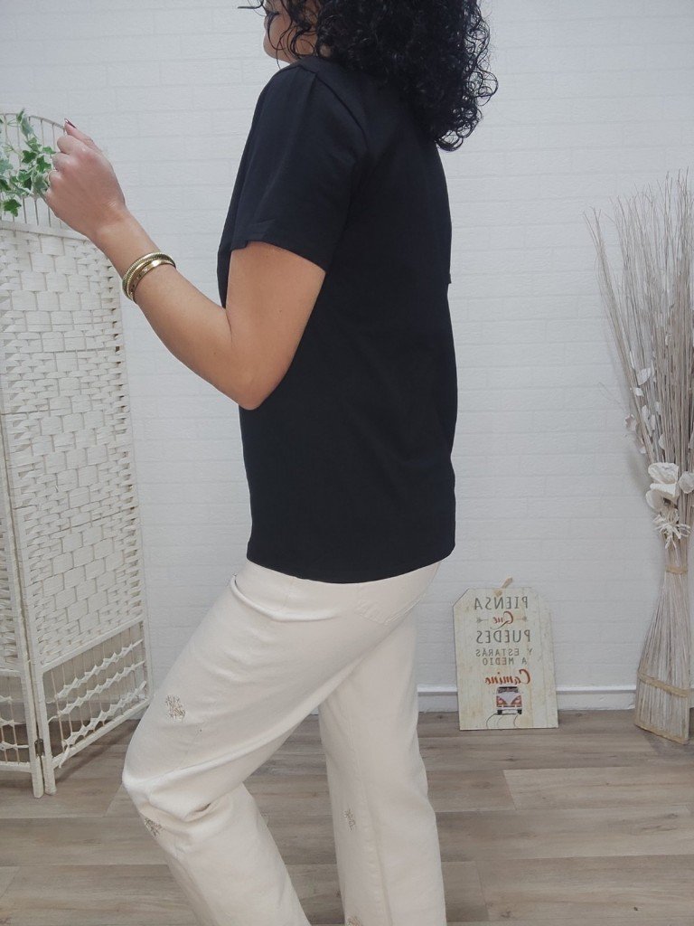 Camiseta de nueva colección, de mangas cortas lisas, con dibujo delantero bordado con forma de osito y un precioso cuello bordado.