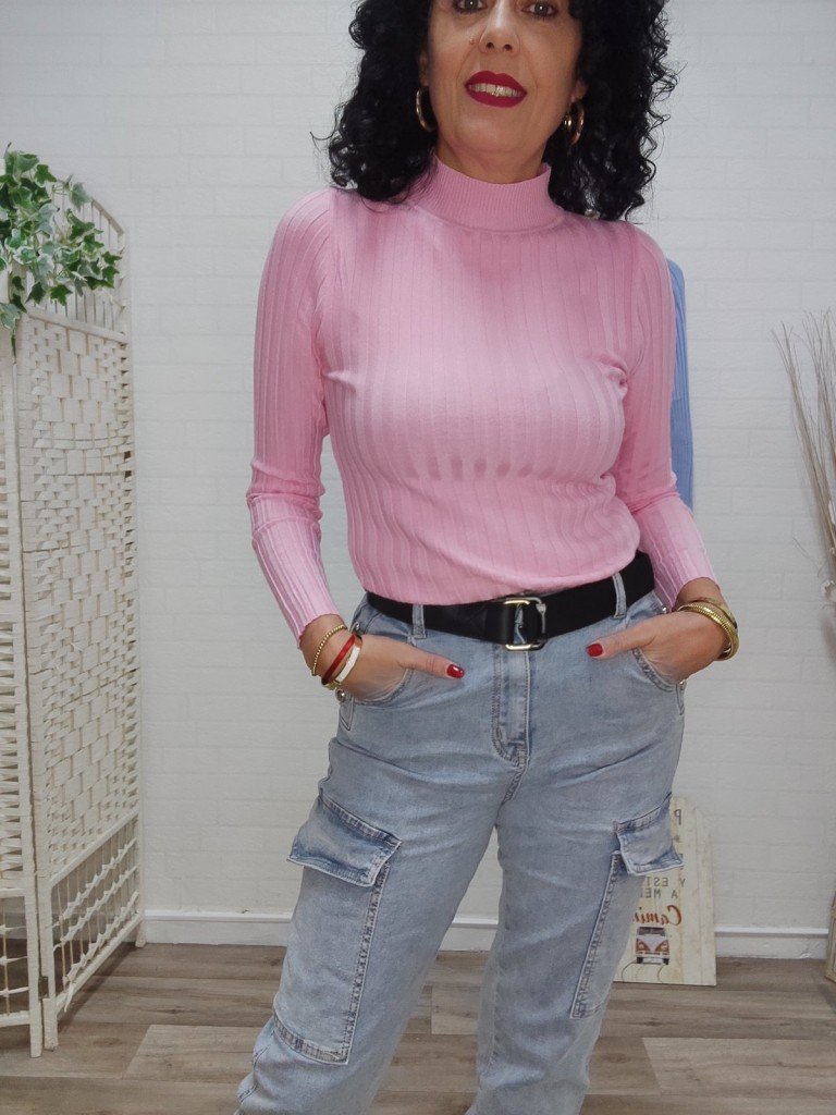 Jersey liso de canalé ancho. Cuello Perkins.