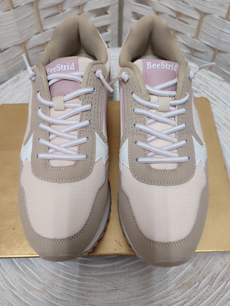 Deportivas con detalles en textil y Polipiel . Tonos pasteles rosa/beige/camel que las hace fáciles de combinar. Cierre de cordones elásticos y suela diseñada para aguantar tu ritmo diario. Perfectas para combinar con pantalón Atenas rosa y bolso Yani rosa.
